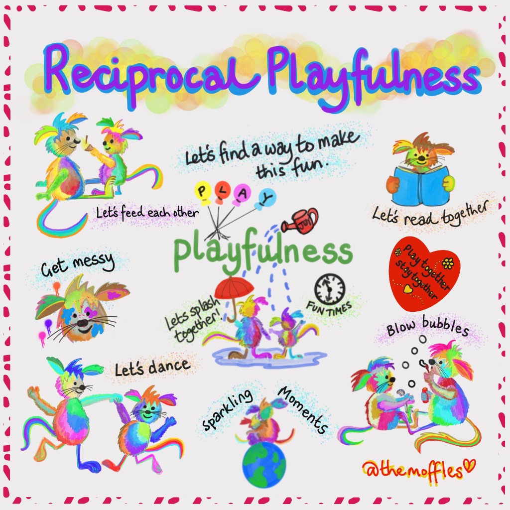 Playfulness is about being light, confident and engaged – looking for strengths and ways to be close & affectionate. Not a distraction technique, but a way to create positive interactions & feelings of acceptance & connectedness. A light-hearted & relaxed attitude brings opportunities to show affection when more direct expressions may be resisted by a traumatised child.