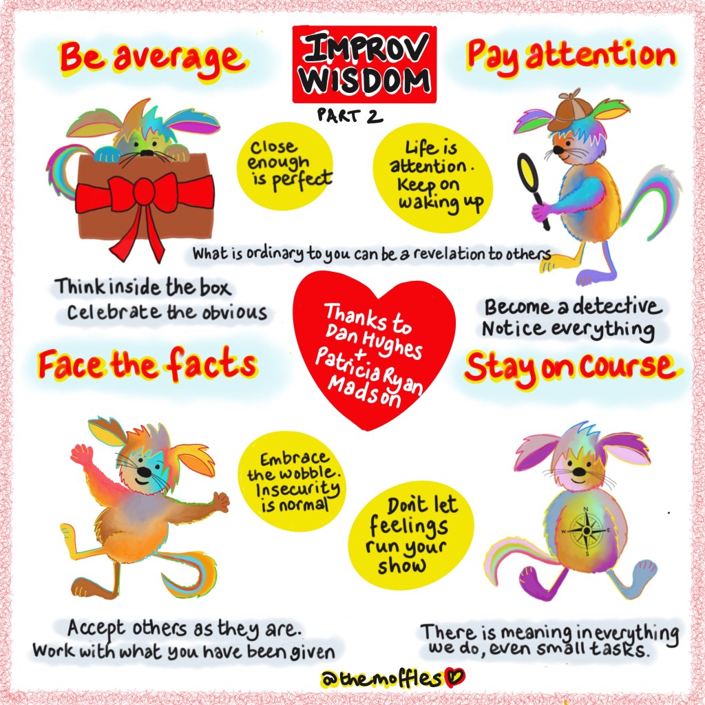 Here is part 2 of Moffled Improv Wisdom. The maxims are a call to lightening up & living an unscripted life.